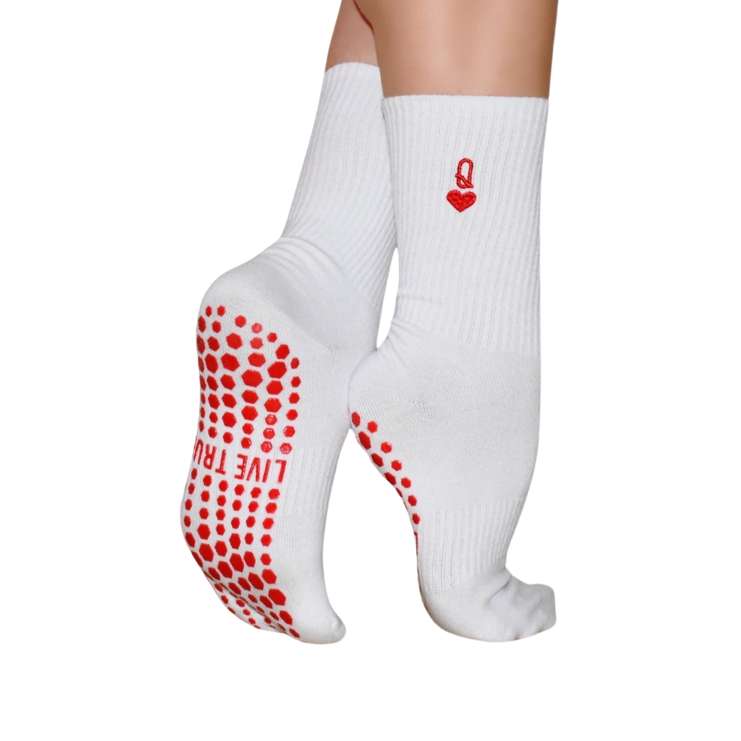 Our Queen of Hearts Crew socks are made with a thinner blend of materials, providing a lightweight and breathable feel for all-day comfort.